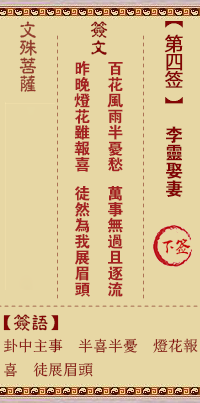文殊菩薩靈簽第4簽解簽 下簽