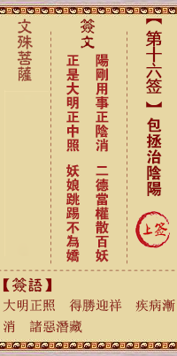 簽詩(shī):陽(yáng)剛用事正陰消,二德當(dāng)權(quán)散百妖,正是大明正中照,妖娘跳踢不為嬌。