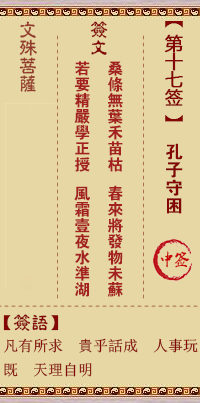 文殊菩薩靈簽第17簽解簽 中簽