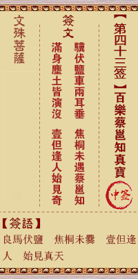 文殊菩薩靈簽第43簽解簽 中簽