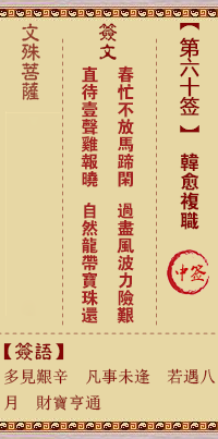 簽詩(shī):春忙不放馬蹄閑,過(guò)盡風(fēng)波力險(xiǎn)艱,直待一聲雞報(bào)曉,自然龍帶寶珠還。