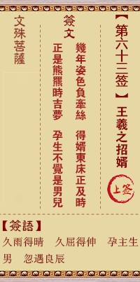 文殊菩薩靈簽第63簽解簽 上簽
