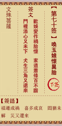 簽詩(shī):歡娛變作禍胎懷,家道蕭條百不諧,門里添心又未下,犬生三角又還來。