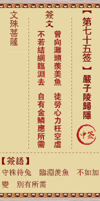 文殊菩薩靈簽第75簽解簽 中簽