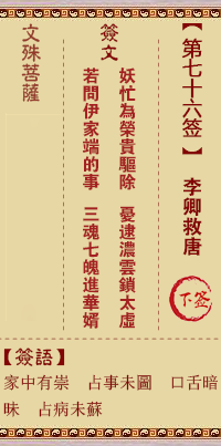 文殊菩薩靈簽76簽 下簽