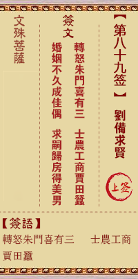 文殊菩薩靈簽第89簽解簽 上簽