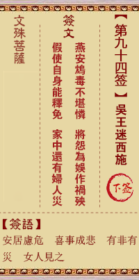 文殊菩薩靈簽第94簽解簽 下簽