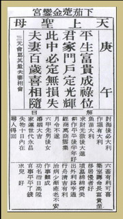 【臺(tái)灣育德媽祖同修會(huì)】古云:“生死有命,富貴在天。”平生只要有富貴之命,一定有祿位可求,也一定能光耀門楣。家和萬(wàn)事成,只要夫婦百年和合,夫唱婦隨,一定不會(huì)有什么損失的!某君因其妻未生男,欲納偏房,乃至媽祖廟求卜,得此簽,一見(jiàn)“夫妻百歲喜相隨”,乃作罷,家庭因而因而免于破裂,其后竟得一男,正應(yīng)了“此中必定無(wú)損失”句。此簽問(wèn)求財(cái),乃得順利達(dá)到目的。問(wèn)功名,有金榜題名吉兆。李君參加特種考試,夜夢(mèng)乘金龍上天,不知主何吉兇,乃赴廟求簽,得此簽,果高中金榜,正應(yīng)了前二句“平生富貴成祿位,君家門戶定生輝”。此簽問(wèn)婚姻,乃和好順利與幸福之良緣。問(wèn)謀事,則須下一番功夫。問(wèn)訴訟,以和為貴。