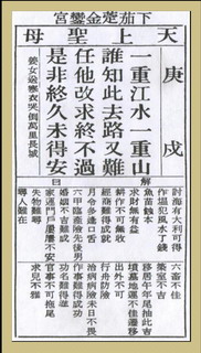 天后靈簽第四十二簽:庚戌屬金利秋 宜其西方