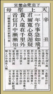 天后靈簽第四十三簽:辛丑屬土利年 四方皆宜