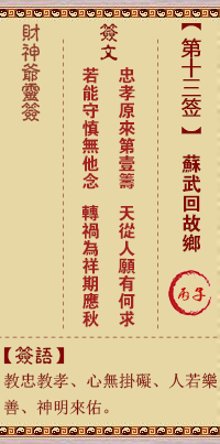 財神靈簽第13簽解簽 財神靈簽第十三簽