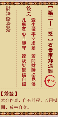 財(cái)神靈簽第21簽解簽 財(cái)神靈簽第二十一簽