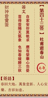 財神靈簽第43簽解簽 財神靈簽第四十三簽