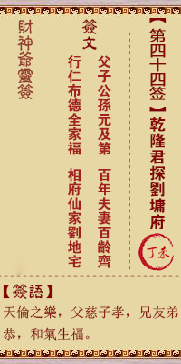 財神靈簽第44簽解簽 財神靈簽第四十四簽
