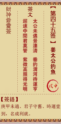 財(cái)神靈簽第45簽解簽 財(cái)神靈簽第四十五簽
