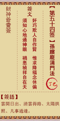 財(cái)神靈簽第54簽解簽 財(cái)神靈簽第五十四簽