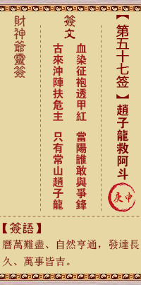 財神靈簽第57簽解簽 財神靈簽第五十七簽
