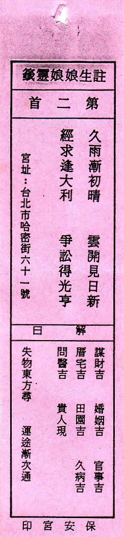 送子娘娘靈簽第2簽解簽 注生娘娘靈簽 第二簽