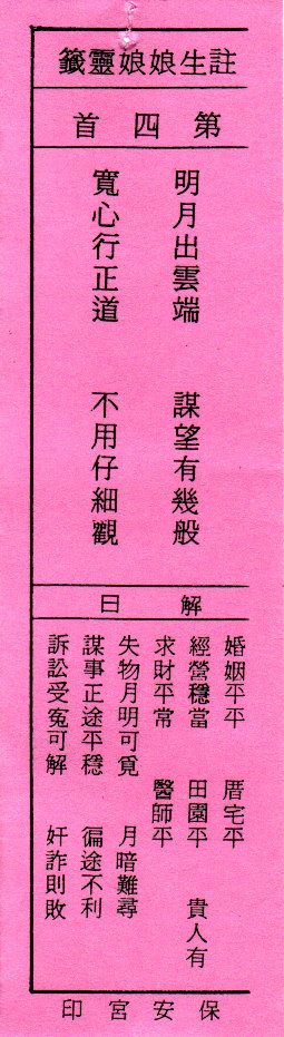 送子娘娘靈簽第4簽解簽 注生娘娘靈簽 第四簽
