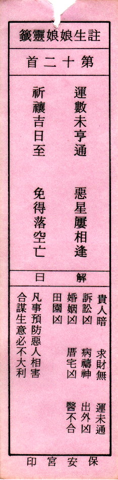 送子娘娘靈簽第12簽解簽 注生娘娘靈簽 第十二簽