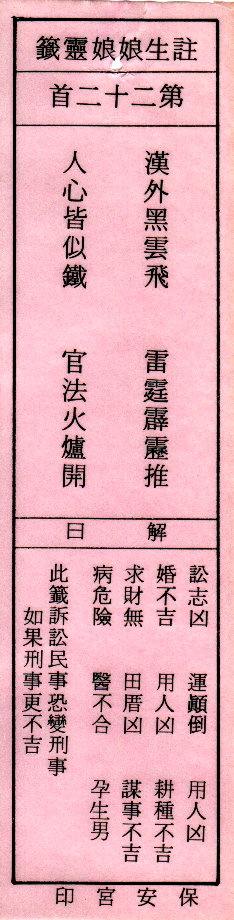 送子娘娘靈簽第22簽解簽 注生娘娘靈簽 第二十二簽