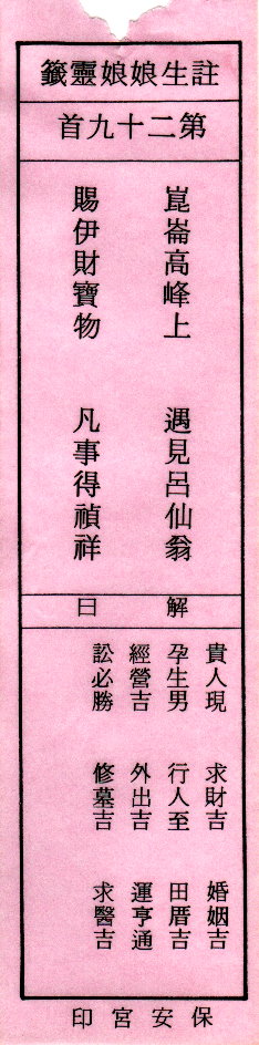 送子娘娘靈簽第29簽解簽 注生娘娘靈簽 第二十九簽