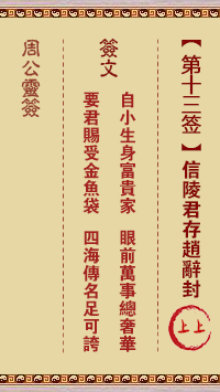 周公靈簽第十三簽:信陵君存趙辭封 上上