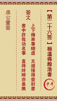 周公靈簽第26簽解簽: