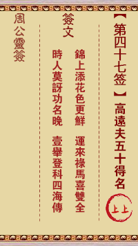 周公靈簽第四十七簽:高遠夫五十得名 上上