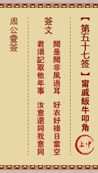 周公靈簽第五十七簽:甯戚飯牛叩角 上中