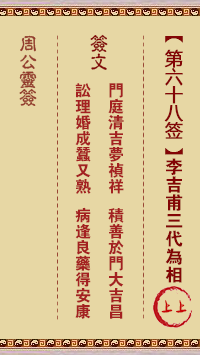 周公靈簽第六十八簽:李吉甫三代為相 上上