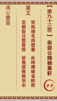 周公靈簽第九十三簽:衛(wèi)懿公賜鶴乘軒 中中