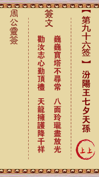 周公靈簽第九十六簽:汾陽王七夕天孫 上上