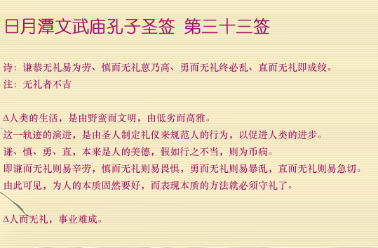 日月潭文武廟孔子圣簽 第三十三簽