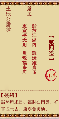 人口平安、作事小心、求財(cái)六分、六甲生男、交易成吉、占訟和吉、行人得信、運(yùn)途好轉(zhuǎn)。
