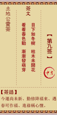 土地公靈簽 第9簽 中吉